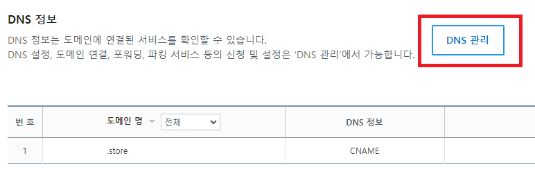 DNS 관리로 이동한다.