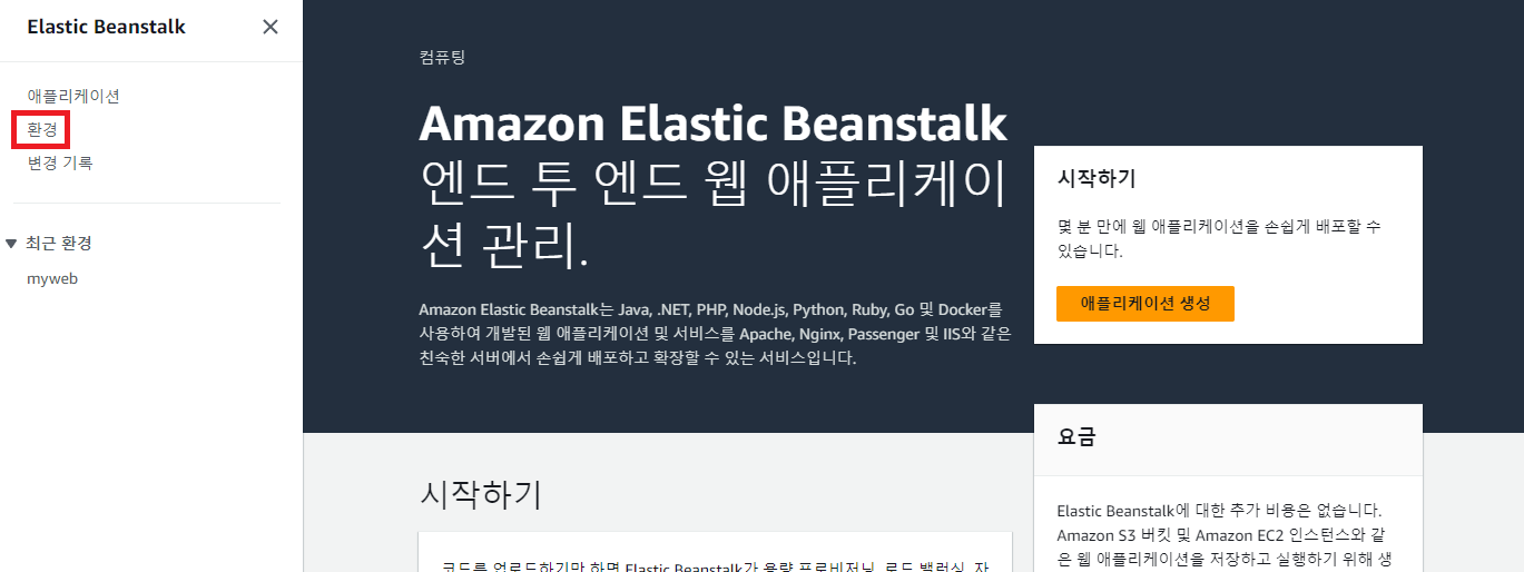 Elastic Beanstalk 접속 후 환경으로 이동한다.