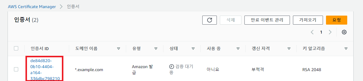 인증서 나열에서 자신이 신청한 인증서 ID 클릭한다.