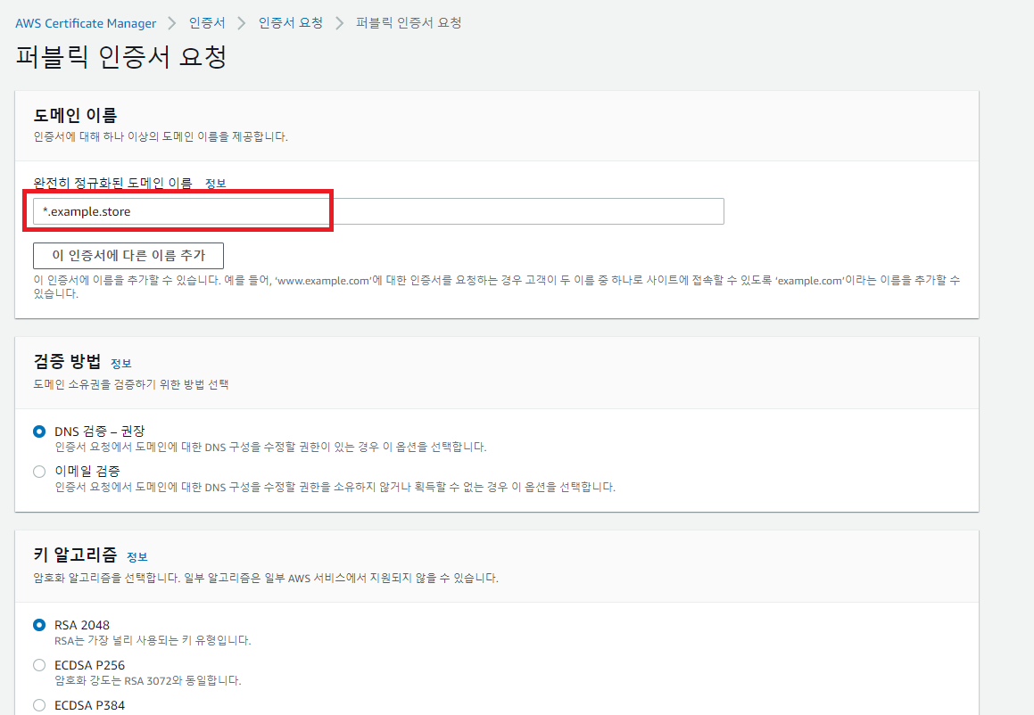 자신이 소유한 도메인을 입력한다. (ex: *.example.store)