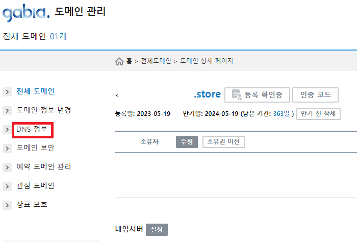 도메인 DNS 설정을 하러 도메인을 구매한 사이트로 이동한다.
