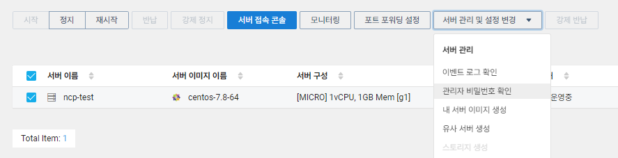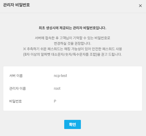 3. 서버 관리 및 설정 변경 -> 관리자 비밀번호 확인