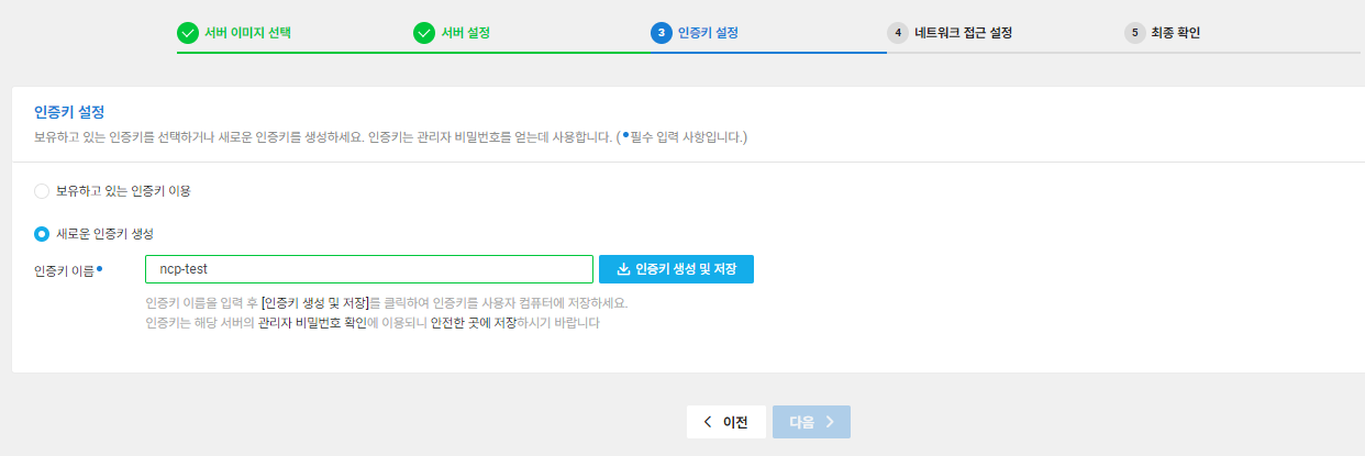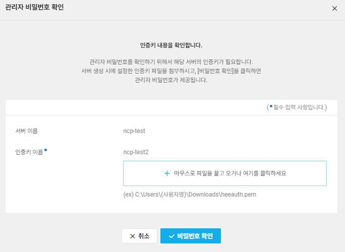 서버 생성 시 발급받은 인증키 업로드