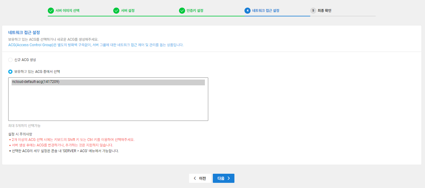 ACG를 생성하거나, 기존의 ACG를 선택 후 ACG 설정