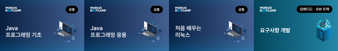 이번 달은 Java 프로그래밍 기초 -> Java 프로그래밍 응용 -> 처음 배우는 리눅스 -> 요구사항 개발 -> 자료구조 / 알고리즘 1 -> SW 아키텍처(기본/모델링) 순으로 강의를 들었다.